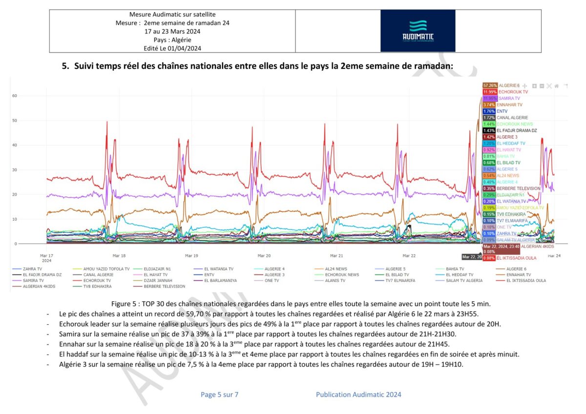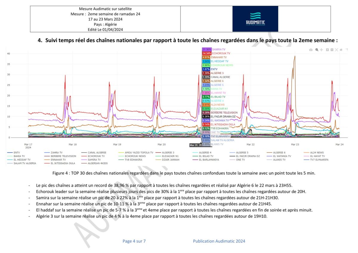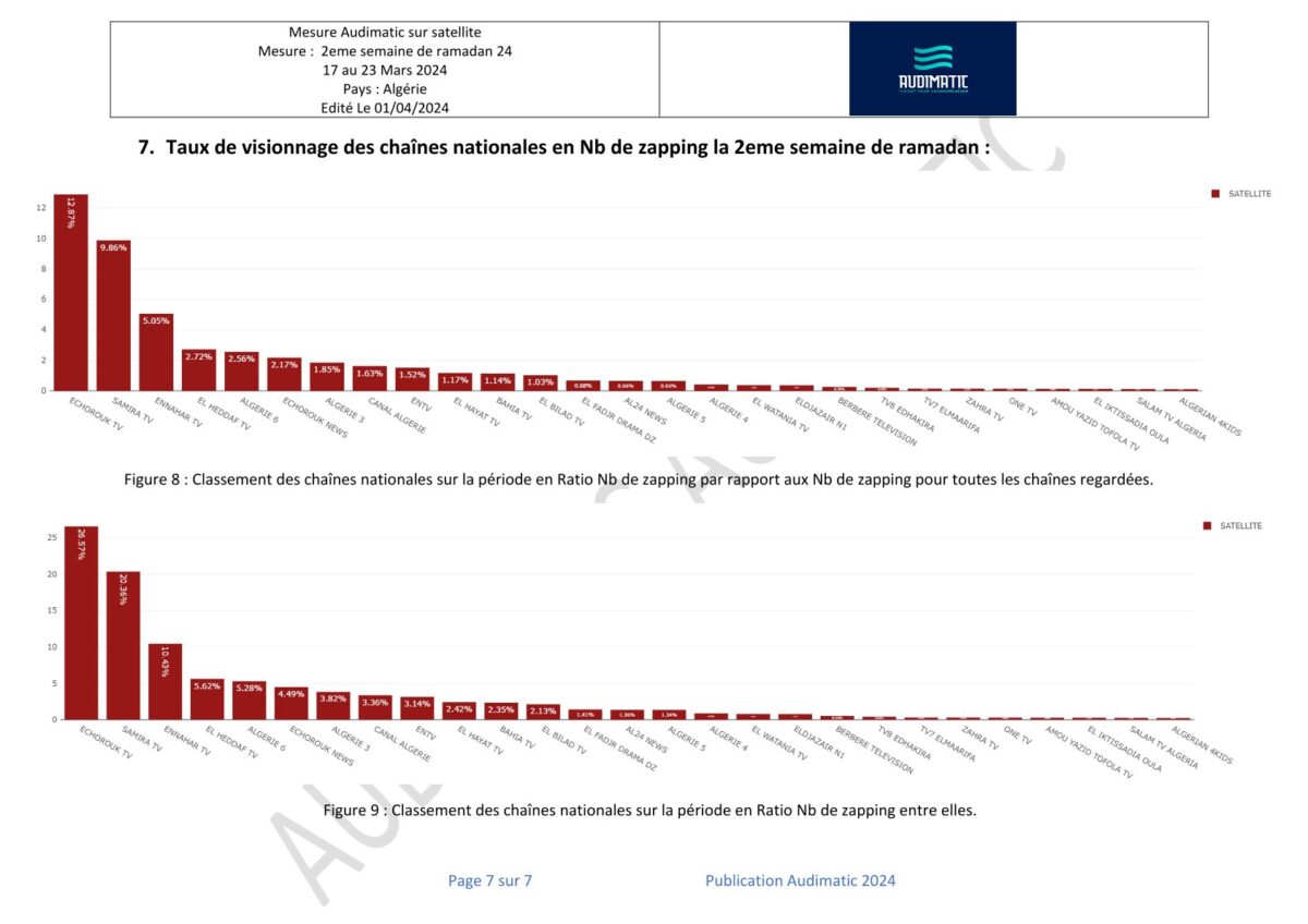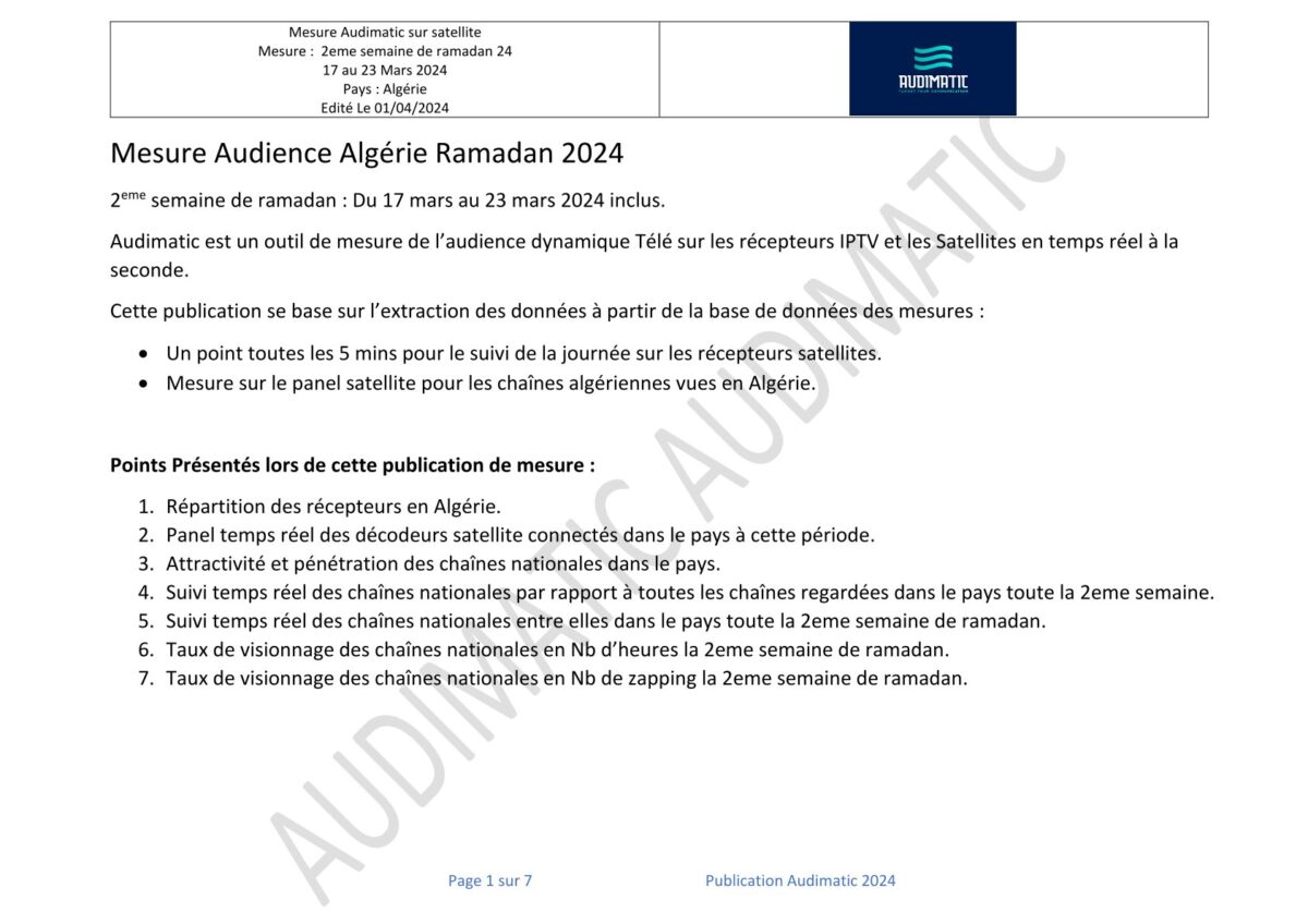 غير مصنفقياسات المشاهدة في الجزائر للأسبوع الثاني من رمضان 2024 المنشورة في الجريدة 01 أبريل 2024 قياسات المشاهدة في الجزائر للأسبوع الأول من رمضان المنشورة في الجريدة قياسات المشاهدة في الوقت الفعلي في الجزائر للأسبوع الثالث من رمضان 2024