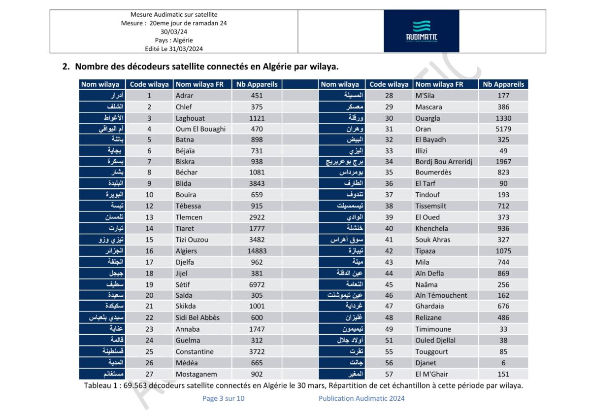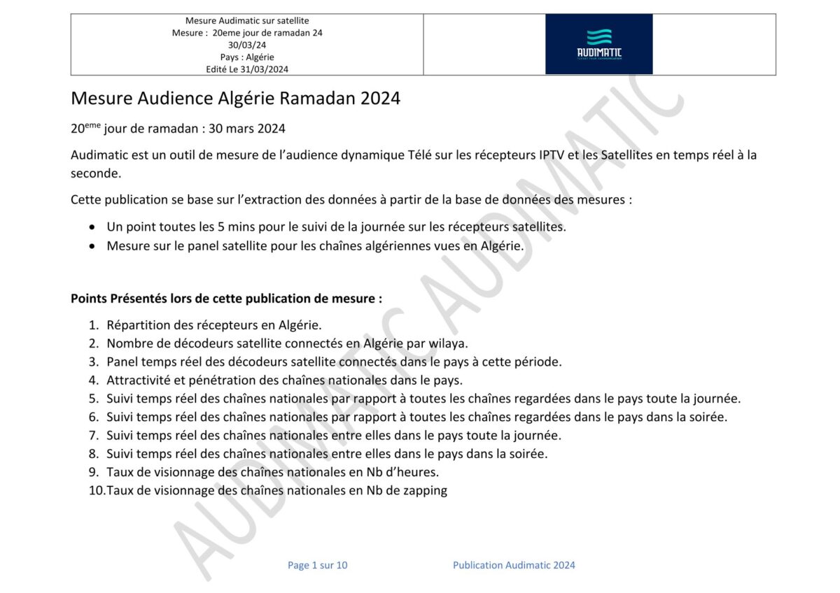 غير مصنفقياسات المشاهدة في الجزائر للقنوات المحلية. اليوم العشرون من رمضان 2024 30 مارس 2024 قياسات المشاهدة في الجزائر لأول يوم من رمضان المنشورة في الجريدة قياسات المشاهدة في الجزائر للأسبوع الأول من رمضان المنشورة في الجريدة