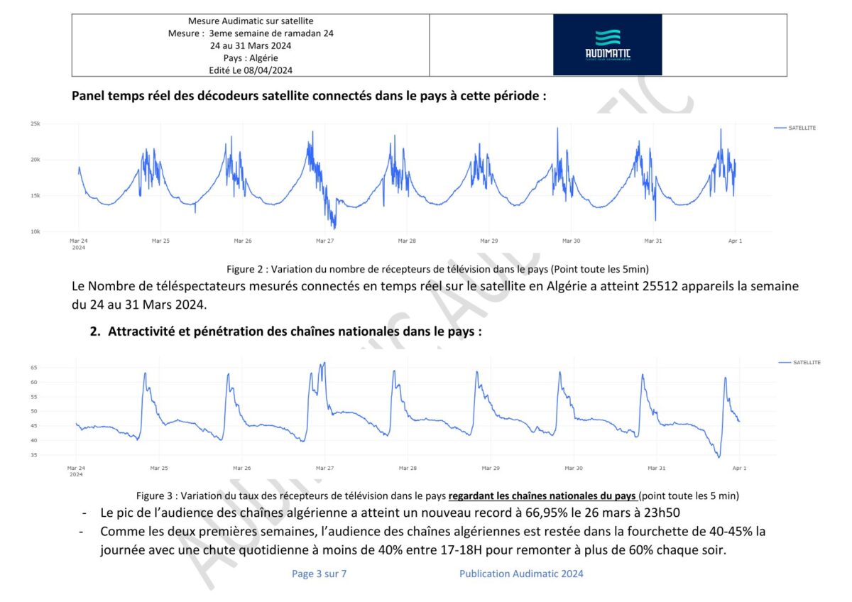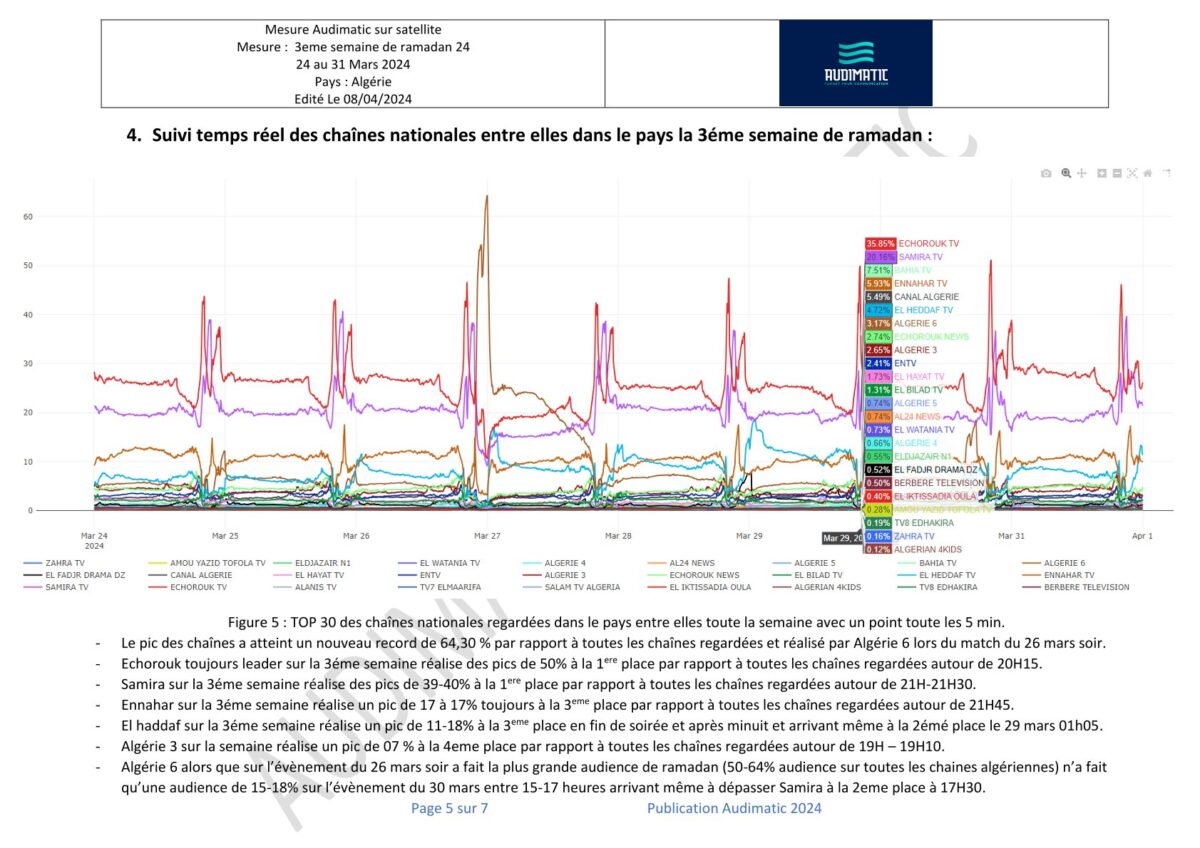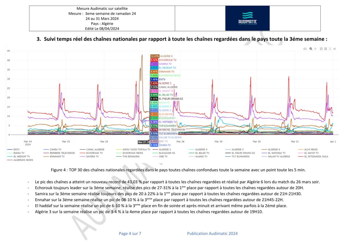 Le rapport des mesures d’audience en temps réel de la dernière semaine du Ramadan 2024 en Algérie