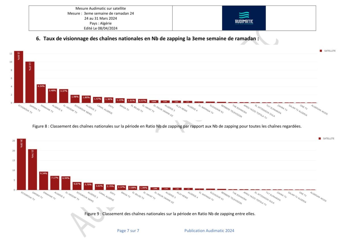 Les mesures d’audience en Algérie pour la deuxième semaine du Ramadan 2024 publiées dans le journal